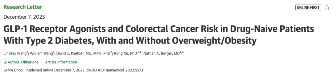 美國凱斯西儲(chǔ)大學(xué)醫(yī)學(xué)院的研究人員在 JAMA 子刊 JAMA Oncology 上發(fā)表了一篇題為:GLP-1 Receptor Agonists and Colorectal Cancer Risk in Drug-Naive Patients With Type 2 Diabetes,With and Without Overweight/Obesity 的研究論文。該研究發(fā)現(xiàn),無論是否肥胖,與其他抗糖尿病藥物相比,GLP-1受體激動(dòng)劑與較低的結(jié)直腸癌風(fēng)險(xiǎn)相關(guān)。與胰島素相比,接受GLP-1受體激動(dòng)劑治療者患結(jié)直腸癌的風(fēng)險(xiǎn)降低44%;與二甲雙胍相比,接受GLP-1受體激動(dòng)劑治療者患結(jié)直腸癌的風(fēng)險(xiǎn)降低25%。>>>商務(wù)洽談,點(diǎn)此處,在線咨詢